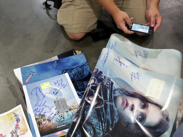 In corral No. 4, the wait on this day was for Felicity Jones, an English actress who plays Jyn Erso in “Rogue One: A Star Wars Story.” Anthony Yip and Teddy Ng, both die-hard Star Wars autograph collectors, were among the first dozen in line. A couple ahead of them had arrived at 6 a.m.