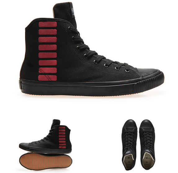 High-top vegan lace-up Sneaker in organic cotton and an FSC Fairtrade rubber sole. The HAN SOLO sneakers have subtle yet striking details synonymous with the legendary Han Solo character: a Corellian Bloodstripe stripe along the side.
