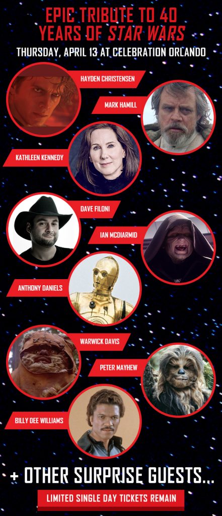 Thursday, April 13th, Star Wars Celebration Orlando will feature “40 Years of Star Wars,” a special panel gathering Star Wars creators and stars from across the saga’s history. Although many galactic-sized surprises are still being saved for the event, Lucasfilm is excited to announce some new panelists that are among the biggest names in Star Wars.