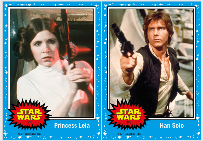 The trading cards are not only printed on 24-point Heritage stock, but they also feature the iconic Blue Starfield card design first seen on the original 1977 TOPPS Star Wars™ trading cards!