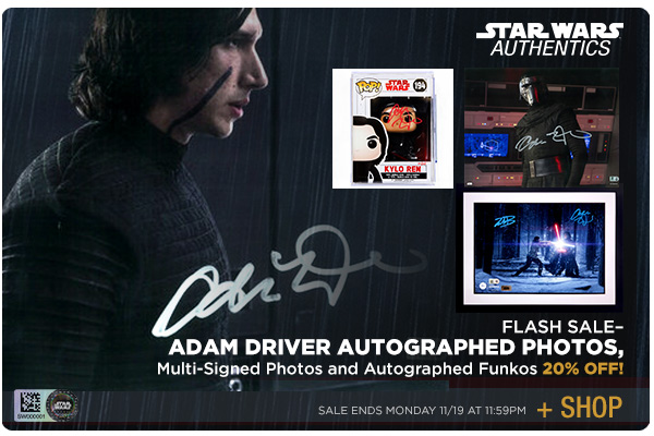 SWA is celebrating Adam Driver‘s birthday with a sale with 20% off until Monday! This includes autographed photos (including multi-signed items) and the signed Funkos. This will be the first time the signed Funkos are on sale. Sale ends Monday 11:59pm EST. Click below to check it out!